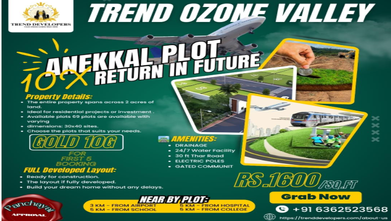 Dreams do not ask anybody to wait. They grow where there is opportunity and location and that is what Trend Ozone valley, in Anekal brings to you.